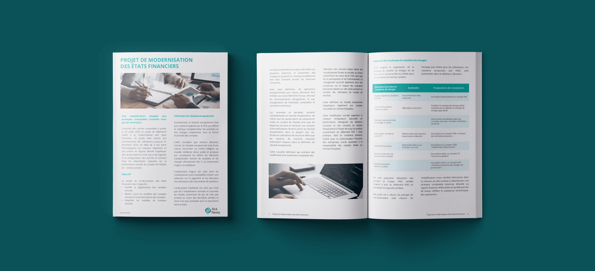 L’Autorité des normes comptables a publié le 24 juillet 2020 un projet de règlement relatif à la modernisation des états financiers. Ce projet était soumis aux commentaires des utilisateurs jusqu’au 31 décembre 2020. Un délai de 3 ans entre l’homologation du nouveau règlement et son entrée en vigueur devrait s’appliquer afin de permettre la mise à jour des logiciels et la renégociation des accords et contrats dont les dispositions reposent sur la présentation actuelle du compte de résultat (ex : intéressement).
